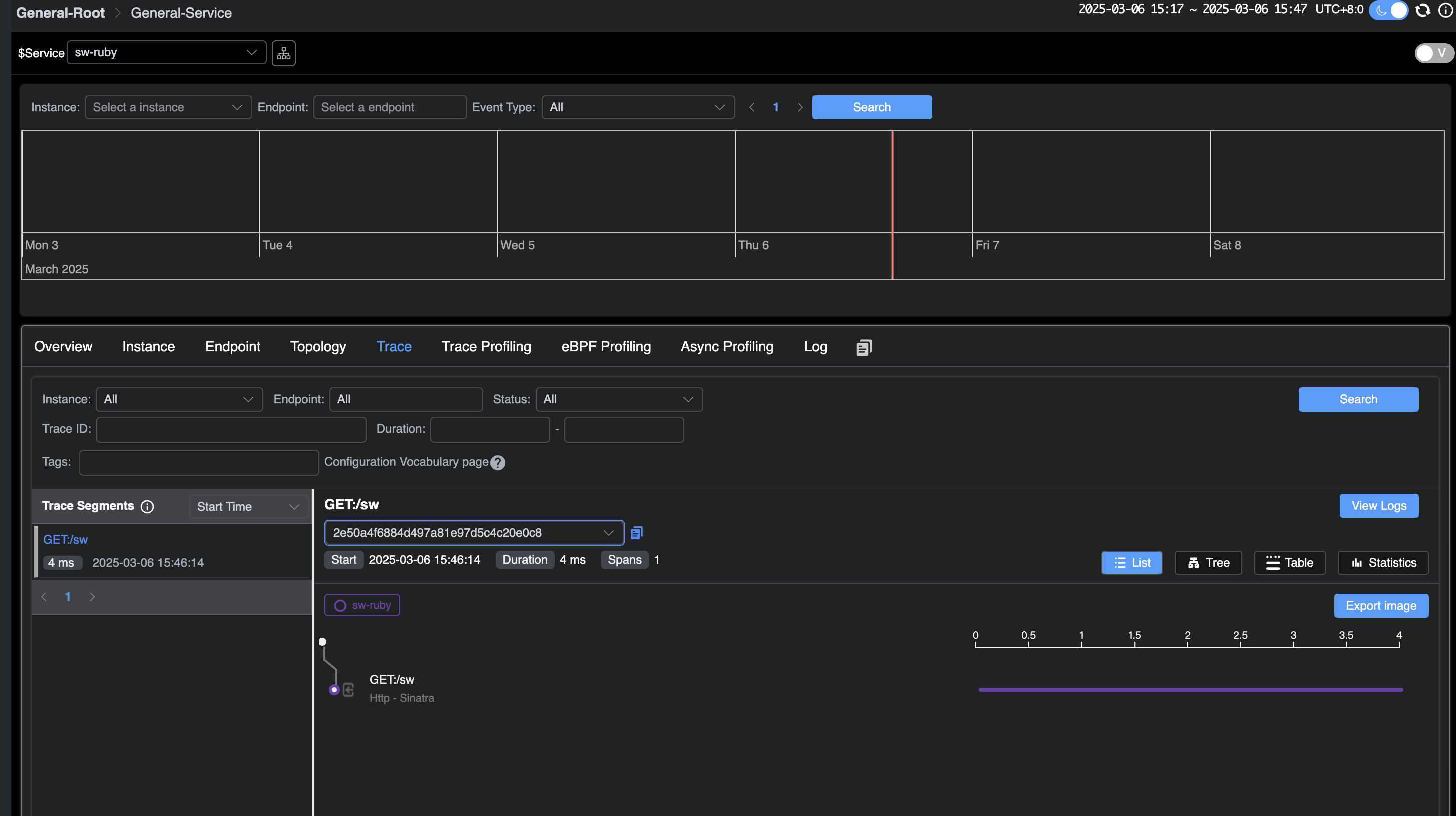 Additionally, on the tracing page, you can see the request you just sent.