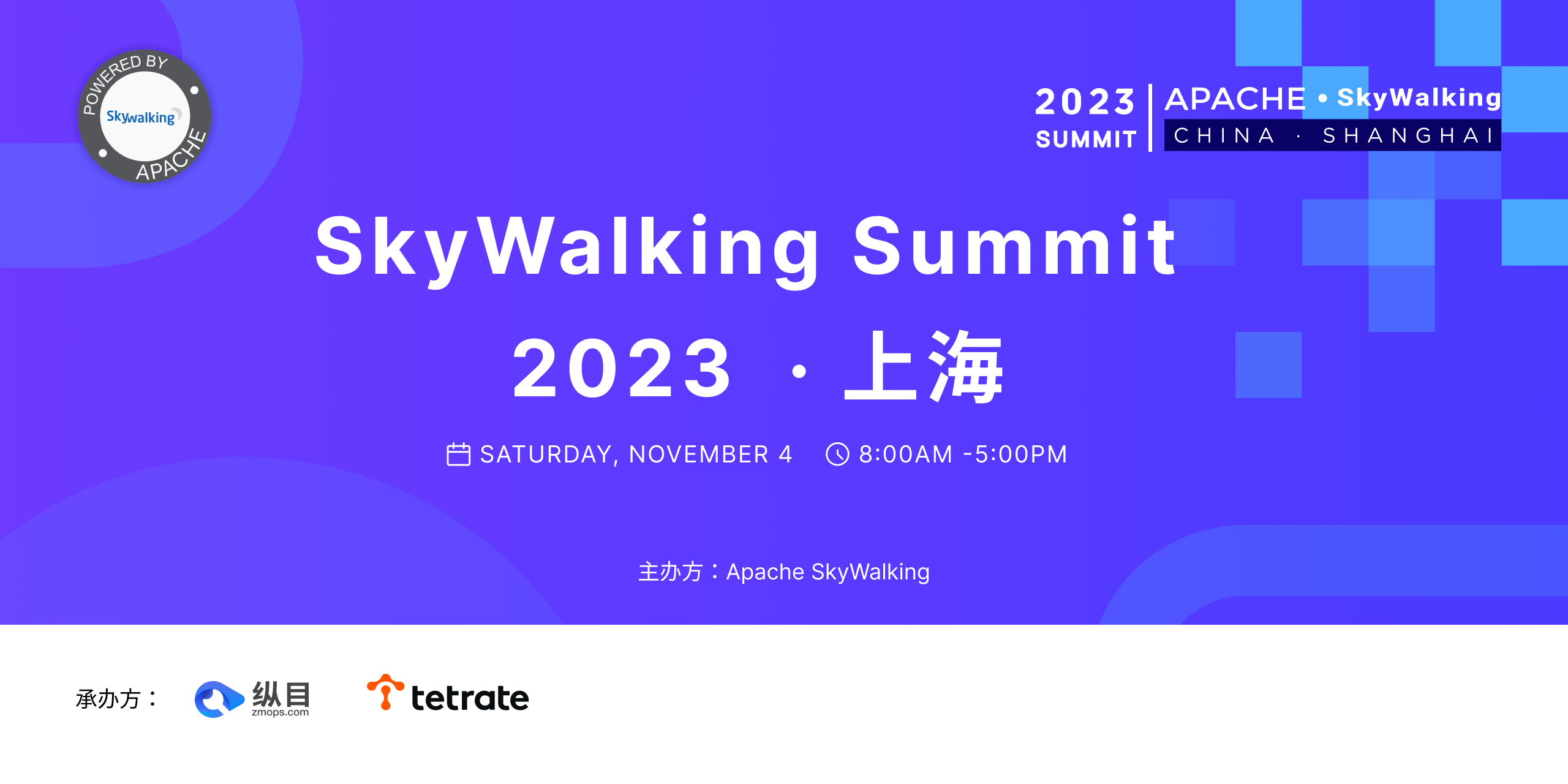 会议时间:2023年11月4日 全天 地点:上海大华虹桥假日酒店 赞助商:纵目科技,Tetrate